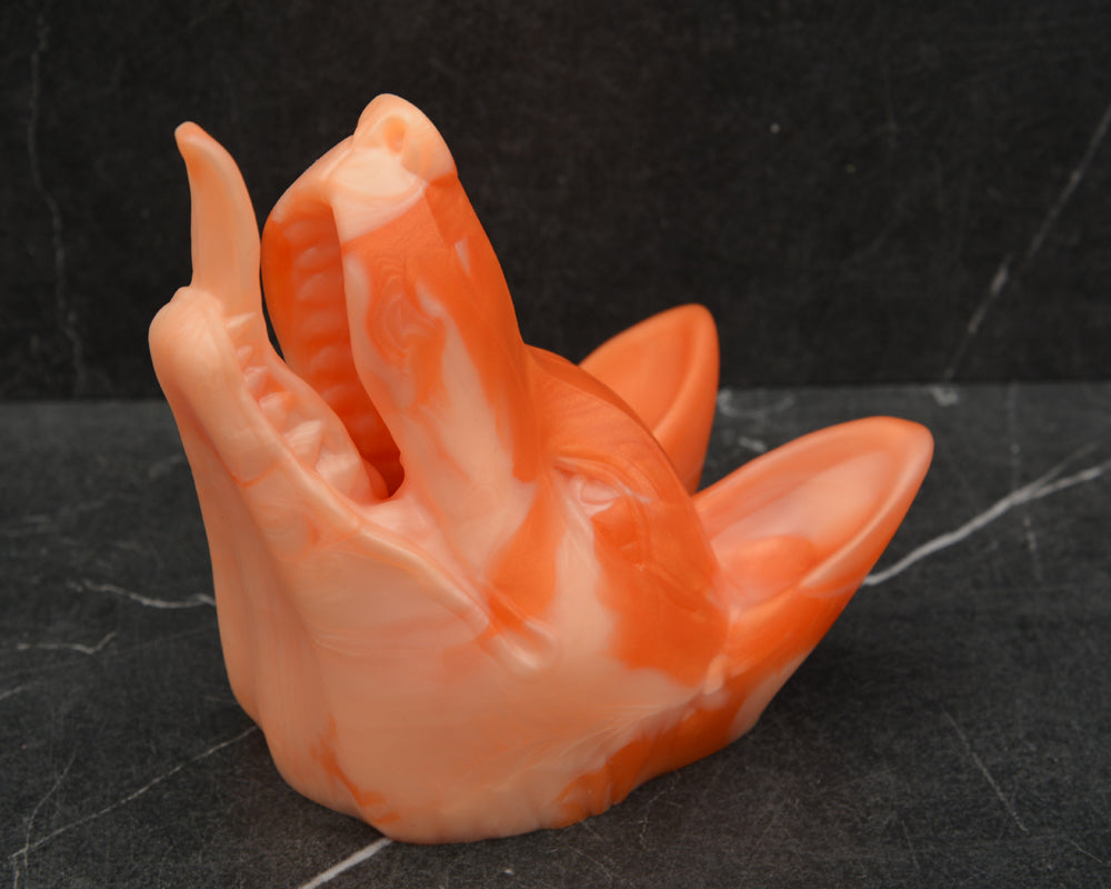 Additional Details: All Small Kouya currently have a "skin tag" in the corner of one eye (can be carefully removed; I often do this myself) and a "chip" between two of their teeth. There may be additional small irregularities inside the maw, where it is difficult to process the master model to the same extent as the exterior. This is normal and not cause for concern or refund.